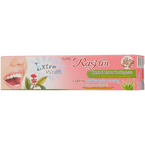 ISME Rasyan Herbal Clove Toothpaste with Aloe Vera & Guava Leaf отбеливающая зубная паста с гвоздикой, алоэ вера и листьями гуавы. Знаменитая отбеливающая зубная паста с экстрактом Алоэ Вера и листьев Гуавы, создана на основе натуральных, природных компонентов и эфирных масел.