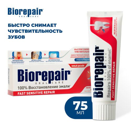 НАЙТИ ВЫГОДНЕЕ - Зубная паста Biorepair Fast Sensitive Repair, для чувствительных зубов, 75 мл, 75 г