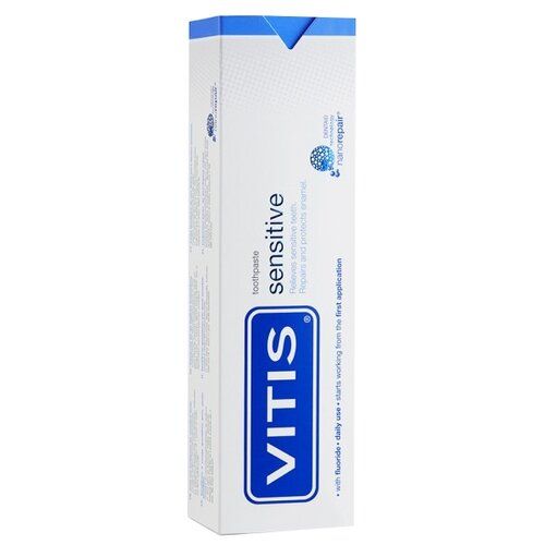 Благодаря активным веществам и низкой абразивности (51-70RDA) зубную пасту VITIS® Sensitive можно использовать после после стоматологического лечения, в т. ч. отбеливания. Мята в составе пасты поможет устранить неприятный запах изо рта.