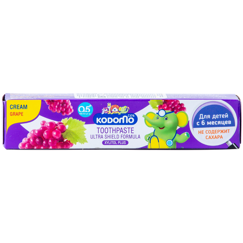 Кремовая зубная паста с ароматом винограда предназначена для комплексной защиты полости рта детей с 6 месяцев. Инновационная формула с ксилитом и фторидом натрия защищает от кариеса, предотвращает появление налета и укрепляет эмаль зубов. Не содержит сахар: предупреждает развитие бактерий, вызывающих кариес.