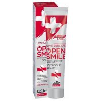 вода, глицерин/сорбитол, диоксид кремния, натрия лаурилсульфат, натрий-карбоксиметилцеллюлоза, ароматическая композиция, тринатрийфосфат, экстракты подорожника и крапивы, диоксид титана, карбомер, натрия бензоат, триклозан, натрий фтористый (0,22%), натрия сахарин, пропиленгликоль, лимонен. Массовая доля фторида 0,10 %.