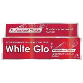 Отбеливающая паста White Glo «Профессиональный выбор» была создана для киноактёров и моделей. Входящие в состав компоненты эффективно высветляют пятна и удаляют жёлтый налёт с эмали. Средство подходит для использования с электрической щёткой. Стоматологи рекомендуют чистить зубы минимум два раза в день.