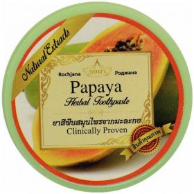 Тайская органическая отбеливающая зубная паста с папайей - (papaya herbal toothpaste) - это разница, которую Вы почувствуете сразу после использования Результаты отбеливания заметны уже через неделю использования. Паста представляет собой твердую массу похожую на мыло. Одной баночки этой пасты хватает на 2 месяца использования одним человеком Экстракт бамбукового угля, Борнеол, Камфора, Ментол, Гвоздичное масло, мята, карбонат кальция, бикарбонат натрия. Способ применения: Паста представляет собой твердую массу похожую на мыло. Паста обильно пенится и обладает специфическим "стоматологическим" вкусом. Не допускайте попадания воды в баночку с пастой Не забывайте закрывать баночку после каждого использования. Одной баночки хватает минимум на 2 месяца регулярного применения.
