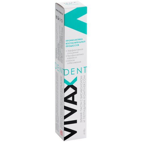 Зубная паста Vivax Dent с пептидным комплексом и Бисабололом создана для для профилактики кариеса и защиты десен.