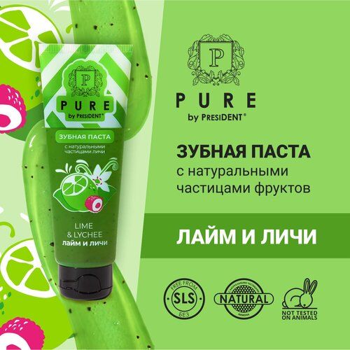 НАЙТИ ВЫГОДНЕЕ - Зубная паста PURE by PRESIDENT Лайм и личи, с натуральными частицами 100 г