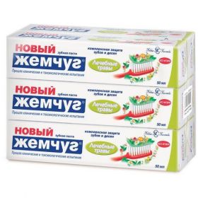 Новый Жемчуг зубная паста лечебные травы 50мл 6 шт. Зубная паста содержит различные экстракты: эхинацеи, мяты перечной, крапивы, зверобоя, календулы, шалфея и ромашки, которые укрепляют десны, снижая их кровоточивость. Восполняет дефицит кальция в составе зубной эмали. Экстракты оказывают укрепляющее действие на зубы и десны. Не содержит фторид.