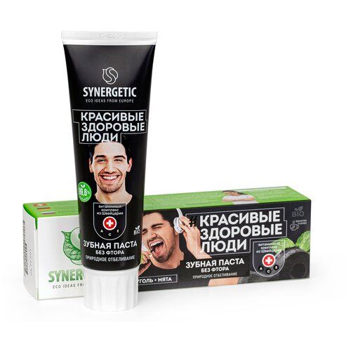 НАЙТИ ВЫГОДНЕЕ - Зубная паста Synergetic Красивые здоровые люди Природное отбеливание Уголь + Мята, 100 мл, 100 г