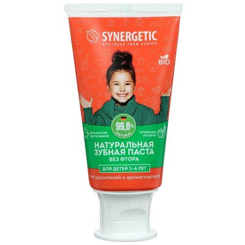 НАЙТИ ВЫГОДНЕЕ - Зубная паста Synergetic клубничка и банан от 3 до 6, 50 мл, 50 г