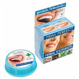 Тайская травяная отбеливающая зубная паста Prim Perfect заботится о полости рта, предотвращает появления кариеса, уменьшает чувствительность зубов, воспаление десен и борется с неприятным запахом благодаря входящим в состав травяным маслам.