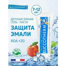 НАЙТИ ВЫГОДНЕЕ - Натуральная детская зубная гель-паста BUCCOTHERM для укрепления эмали и вкусом персиковый чай, Букотерм, Франция, 50мл