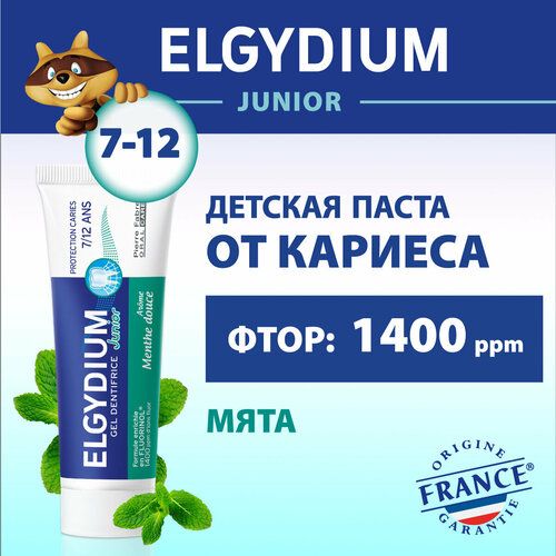 НАЙТИ ВЫГОДНЕЕ - Зубная паста гель для детей от 7 до 12 лет Elgydium Junior защита от кариеса, Эльгидиум, вкус Нежная мята, Франция, 50 мл