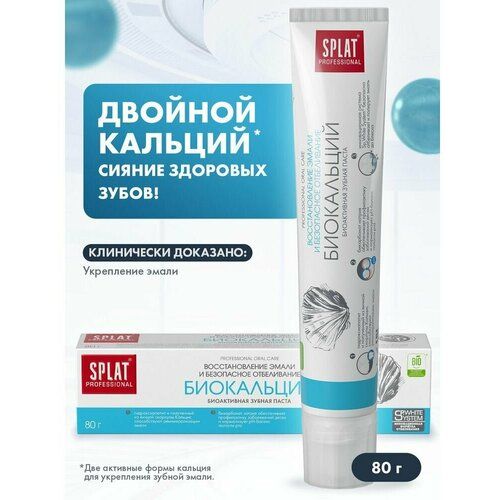 Splat Биокальций: Комплексная зубная паста с биоактивным Кальцисом, полученным из яичной скорлупы, и гидроксиапатитом - строительным веществом твердых тканей зуба.