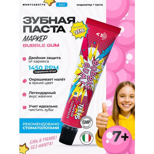 НАЙТИ ВЫГОДНЕЕ - Зубная паста - маркер, индикатор налета Montсarotte Bubble Gum, со вкусом жвачки, обучение чистке зубов, 30 мл, Монткаротт, Италия