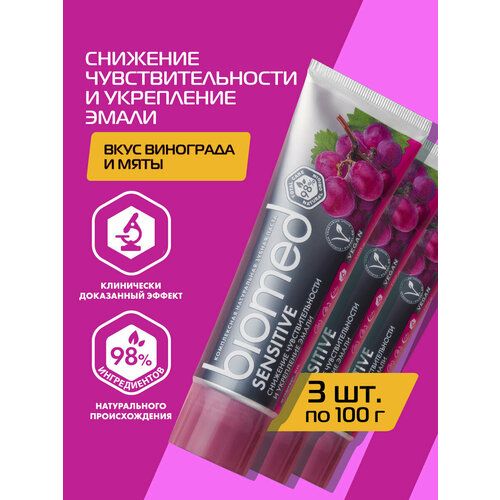 НАЙТИ ВЫГОДНЕЕ - Зубная паста Biomed Sensitive виноград для чувствительных зубов 100 г, 3 шт