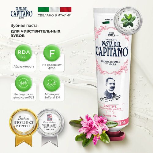 НАЙТИ ВЫГОДНЕЕ - Pasta del Capitano 1905 Sensetive Зубная паста для чувствительных зубов без фтора, с гидроксиапатитом кальция, 75 мл