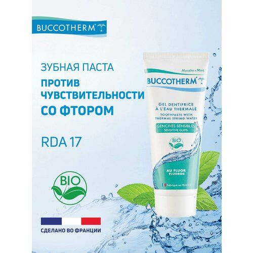 НАЙТИ ВЫГОДНЕЕ - Зубная гель-паста Buccotherm с термальной водой для чувствительных десен, с фтором, Франция, 75 мл