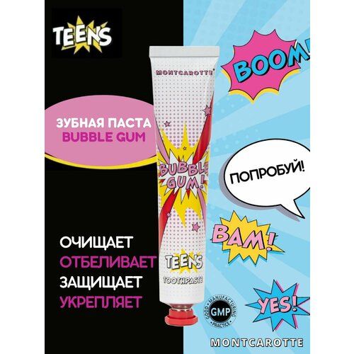НАЙТИ ВЫГОДНЕЕ - Зубная паста MontCarotte Bubble Gum, со вкусом жвачки, для детей 7+ и взрослых, 50 мл, Монткаротт, Италия