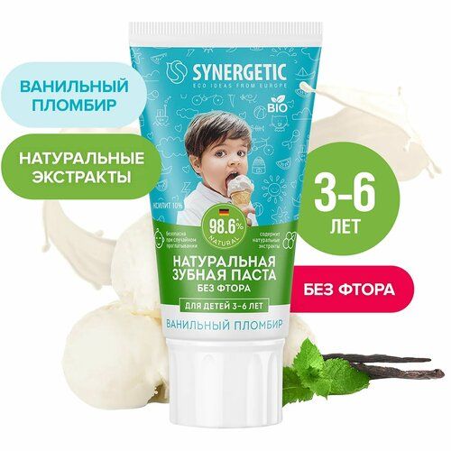 Детская зубная паста Synergetic Ванильный пломбир от 3 до 6 лет, 50 гр