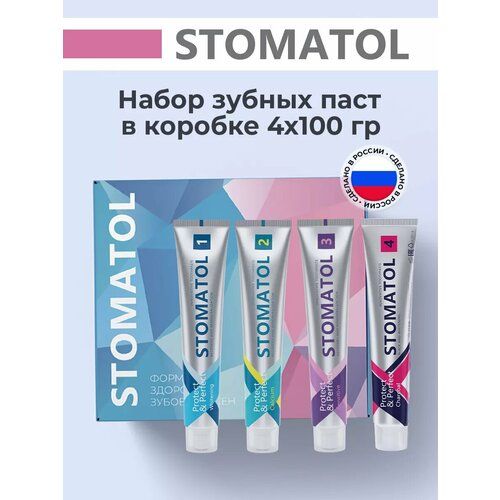 НАЙТИ ВЫГОДНЕЕ - Набор зубных паст STOMATOL в коробке 4 штуки по 100 гр (1, 2, 3, 4)