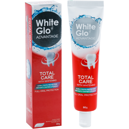 Формула зубной пасты White Glo Advantage Тотальная защита обеспечивает эффективный уход за полостью рта. Бромелайн (экстракт ананаса) эффективно расщепляет налет в самых труднодоступных местах и делает зубы гладкими. Экстракты алоэ вера и шиповника ухаживают за деснами и слизистыми оболочками и оказывают противовоспалительное действие.