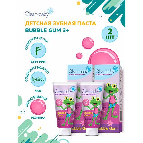 НАЙТИ ВЫГОДНЕЕ - Набор Clean-baby детская зубная паста, 3-6 лет 50 мл Жевательная резинка 2 шт.