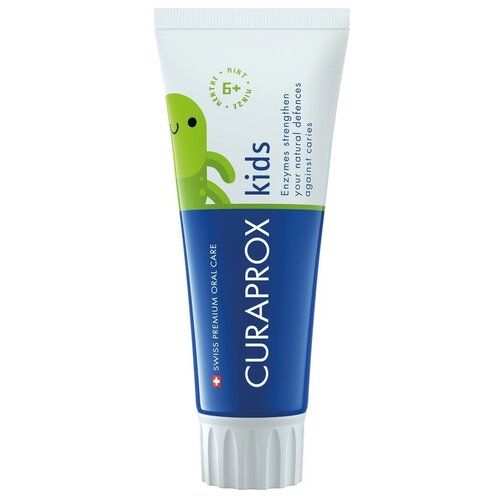 Детская зубная паста Kids со вкусом мяты, предназначена для детей с 6 лет. 1450 ppm Зубная паста поддерживает защитные функции слюны, естественно и нежно очищает детскую эмаль зубов, снижает риск появления налета на зубах, надолго обеспечивает свежесть дыхания, уничтожает болезнетворные бактерии, обладает противокариозным действием, предотвращает заболевания слизистой полости рта и устраняет сухость.