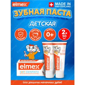 Зубная паста Elmex Children's для детей 0-2 лет, 50 мл. х 2 шт. Зубная паста Elmex Children's (Элмекс Детская) для детей с 1-го зуба и до 6 лет. Эффективно предотвращает развитие кариеса, повышая кислотоустойчивость зубной эмали. Обладает длительным противокариесным действием. Стимулирует реминерализацию эмали молочных зубов. Ускоряет созревание эмали прорезавшихся зубов.
