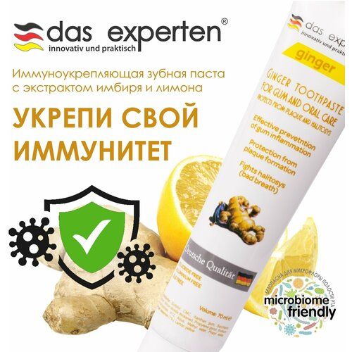 Наличие необходимого количества слюны во рту очень важно, поскольку она играет определенную роль в очищении зубов и десен от налета и бактерий. При недостаточном количестве слюны возрастает рост бактерий, налета, происходит развитие кариеса, появляется неприятный запах изо рта, возникает риск появления стоматологических заболеваний (гингивит, пародонтит и т. д.). Освежающая и интенсивно увлажняющая зубная паста Das Experten Ginger Force с экстрактами имбиря и лимона – натуральный продукт без фтора, парабенов, сульфатов и красителей.