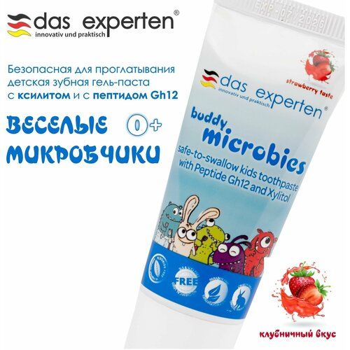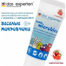НАЙТИ ВЫГОДНЕЕ - Безопасная для проглатывания, детская зубная гель паста Das Experten веселые микробчики 0+