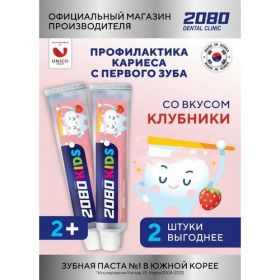 НАЙТИ ВЫГОДНЕЕ - Dental Clinic 2080 Набор Зубная паста детская с ксилитом профилактика кариеса Kids Клубника для детей, 2 шт х 80 гр