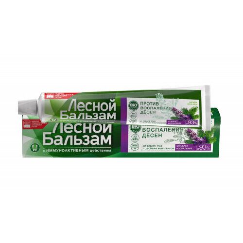 Лесной бальзам зубная паста С экстрактом шалфея И алоэ-вера на отваре трав 75МЛ. снимает воспаление десен, раздражение и зуд, укрепляет десны при воспалении десен экстракт шалфея, алоэ-вера, отвар лечебных трав Бренд Лесной бальзам - это проверенные продукты, способствующие снижению воспаления, кровоточивости десен и обеспечивающие качественную профилактику основных проблем полости рта в домашних условиях. лесной бальзам зубная паста С шалфеем при воспалении десен - специальная зубная паста, предназначенная для ухода за деснами при гингивите. В ее состав входит целый комплекс экстрактов трав, которые способствуют снятию воспаления, укрепляют и питают десны. Внешний вид и свойства: пастообразная текстура светло-зеленого цветаНовая зубная паста Лесной бальзам c иммуноактивным действием помогает решить проблему воспаления десен и в 2 раза улучшает работу собственного иммунитета полости рта, снижая риск развития проблем с деснами*. Клинически-доказанный эффект:- С первого применения исчезает болезненность десен**- До 94% снижает воспаление десен при регулярном использовании***- В 5 раз снижает скорость образования налета на зубах, уменьшая бактериальную нагрузку на мягкие ткани полости рта***Особенности состава: Насыщенный хвойный вкус. Содержит хвойных комплекс (на основе экстрактов пихты, живицы, можжевельника) с отваром 5 целебных трав, экстрактом шалфей и соком алоэ. Богатый натуральный состав способствует снижению воспалений и отечности десен, блокирует развитие воспалительного процесса и стимулирует восстановление мягких тканей полости рта. Рекомендации: Зубная паста от воспаления десен одобрена Стоматологической Ассоциацией России и рекомендована в качестве профилактического средства при появлении проблем с деснами (гингивит, пародонтит). Использовать 2 раза в день до улучшения состояния десен, после - минимум 1 раз в день, вечером, для укрепления десен.*Лесной бальзам поддерживает иммунитет и усиливает эффективность работы естественных защитных функций полости рта. С