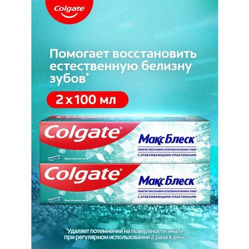 НАЙТИ ВЫГОДНЕЕ - Зубная паста Colgate Макс Блеск Кристальная мята с отбеливающими пластинками, 100 мл (2 шт)