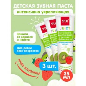 НАЙТИ ВЫГОДНЕЕ - Детская укрепляющая зубная паста SPLAT Juicy со вкусом киви и клубники, без фтора, для всех возрастов, 35 мл, 3 шт