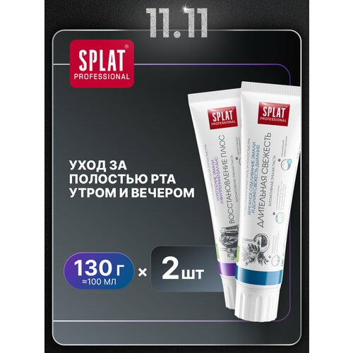 НАЙТИ ВЫГОДНЕЕ - Зубная паста SPLAT Длительная свежесть и Восстановление плюс, 100 мл, 2 шт