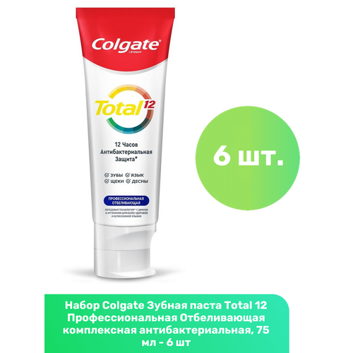 НАЙТИ ВЫГОДНЕЕ - Colgate Зубная паста Total 12 Профессиональная Отбеливающая комплексная антибактериальная, 75 мл - 6 шт