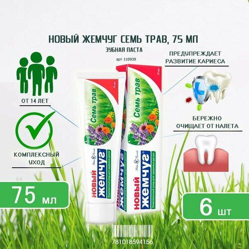 НАЙТИ ВЫГОДНЕЕ - Зубная паста Новый Жемчуг Семь трав, 75 мл х 6шт
