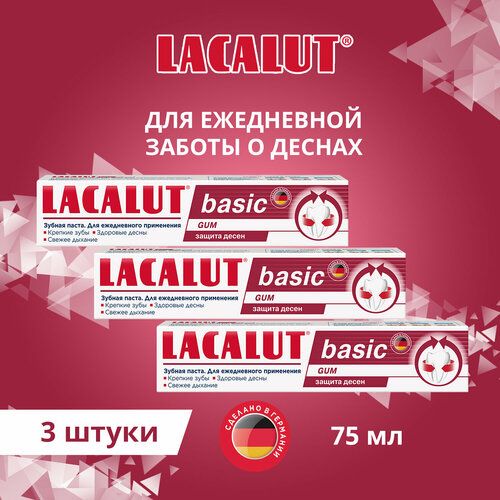 Зубная паста Lacalut "Basic Gum" 75мл, спайка из 3 штук
