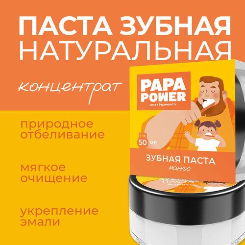 Зубная паста "PAPA Power" с манго объемом 50 мл представляет собой натуральный продукт, разработанный для комплексного ухода за полостью рта.