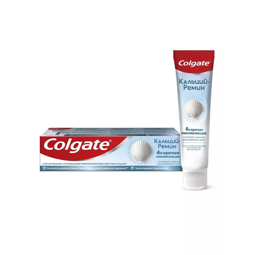 Зубная паста Colgate Кальций-Ремин с природным био-аргинином для восстановления и защиты здоровья эмали зубов путем 4-х их кратной реминерализации, 100 мл. Зубная паста Colgate Кальций-Ремин — передовая восстанавливающая паста, которая обеспечивает 4-х кратную реминерализацию, способствует снижению деминерализации эмали и защищает её. - Возвращает здоровый уровень pH баланса: Процесс деминерализации эмали начинается тогда, когда кислоты в зубном налете понижают уровень рН в полости рта, мешая кальцию, входящему в состав слюны, реминерализировать. Клинически доказано: восстанавливает здоровый уровень рН, помогая процессам укрепления зубов. - Содержит технологию "ремин-демин": C природным аминокомпонентом — Bio-аргинином, который усиливает естественное действие кальция** - восстанавливает ранние кариозные поражения: Благодаря комбинации Bio-аргинина и активной минеральной формулы. Клинически доказано: передовое сочетание компонентов формулы помогает восстанавливать ранние кариозные поражения, а также формирует защитный барьер на поверхности эмали - Реминерализирующая и противокариесная эффективность, доказанная 10 годами клинических исследований с участием 18000 человек - Перерабатываемые тюбик и крышка, а также внешняя картонная упаковка *Улучшение накопления минералов в эмали по сравнению с обычной фторидсодержащей зубной пастой Colgate **Помогает встраивать в эмаль натуральный кальций из состава слюны благодаря действию фторида ***Результаты на основании 6-месячного клинического исследования.
