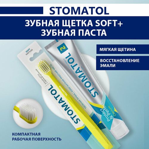 НАЙТИ ВЫГОДНЕЕ - Набор STOMATOL зубная паста Calcium 100 гр + зубная щетка мягкая желтая