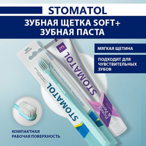 Набор STOMATOL зубная паста Sensitive 100 гр + зубная щетка мягкая бирюзовая - это профилактический набор для ухода за полостью рта, который включает в себя зубную пасту и мягкую зубную щетку.