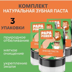 Зубная паста "PAPA Power" 3 баночки объемом 50 мл каждая предназначена для комплексного ухода за полостью рта. Благодаря своему составу, она обеспечивает эффективное удаление зубного налета и отбеливание зубов.