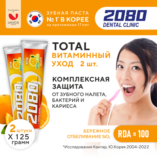 НАЙТИ ВЫГОДНЕЕ - Dental Clinic 2080 Набор Зубная паста освежающая против кариеса Витаминный уход с коэнзимом Q10 и фтором, 2 шт х 120 гр