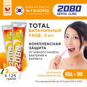 Набор зубная паста Dental Clinic 2080 Витаминный уход представляет собой два тюбика по 120 грамм каждый.
