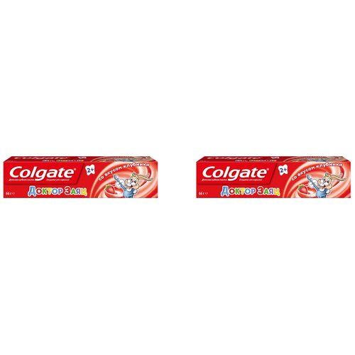 Зубная паста Colgate Доктор Заяц вкус Клубники детская зубная паста 2х50мл. Малышей бывает сложно уговорить чистить зубы, поэтому родители идут на любые ухищрения, чтобы привить детям эту полезную привычку. В этом может помочь зубная паста Colgate Доктор Заяц для детей 2+ со вкусом жвачки или клубники.
