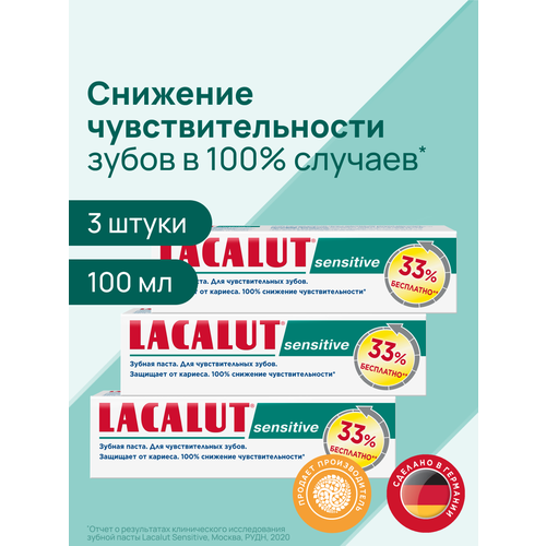 НАЙТИ ВЫГОДНЕЕ - Зубная паста LACALUT Sensitive, для чувствительных зубов и десен, антибактериальная, 100 мл, спайка из 3 штук