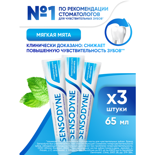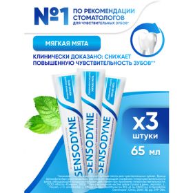 НАЙТИ ВЫГОДНЕЕ - Зубная паста Sensodyne Ежедневная Защита Мягкая мята с фтором, для снижения чувствительности зубов и защиты от кариеса, 65 г 3 шт