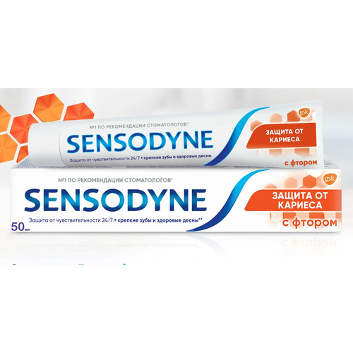 НАЙТИ ВЫГОДНЕЕ - Зубная паста Sensodyne Защита от кариеса с фтором, для снижения чувствительности зубов, удаления зубного налёта, 50 мл