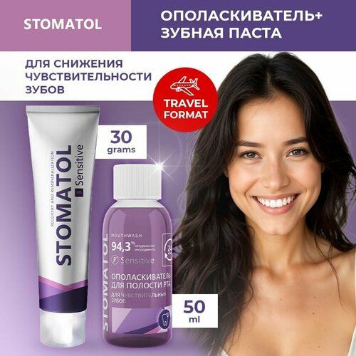 НАЙТИ ВЫГОДНЕЕ - Набор STOMATOL Sensitive зубная паста 30гр + ополаскиватель для полости рта 50мл