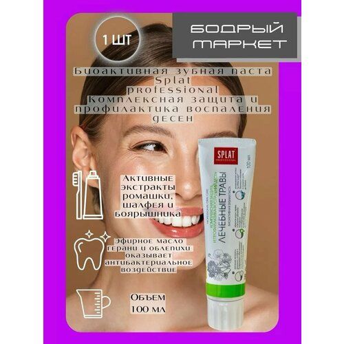 Гелевая зубная паста натуральная от воспаления десен Лечебные травы, 100 мл." Уважаемые покупатели кальцис, полученный из яичной скорлупы, укрепляет эмаль и защищает от кариеса. Профессиональная натуральная паста содержит эфирное масло герани, которое обладает обезболивающим свойством и благоприятно влияет на эмоциональное состояние. Лечебная зубная паста изумрудного цвета. Наш набор для ухода за зубами содержит экстракт облепихи, который заживляет мягкие ткани. Ионы укрепляют эмаль зубов и делают ее устойчивой к кислотам. Необходимо следить за здоровьем полости рта, чтобы бывать в кабинете у стоматолога только на профилактических осмотрах. Начните использовать гелевую пасту в тубе для полости рта, она оказывает тонизирующее действие на десны, способствует улучшению процесса заживления и регенерации. Паста от налета подойдет для взрослых и детей. А также средство – отличный подарок для близких. Можно взять для путешествий. С уважением к Вам, SPLAT, выбирайте и берегите здоровье